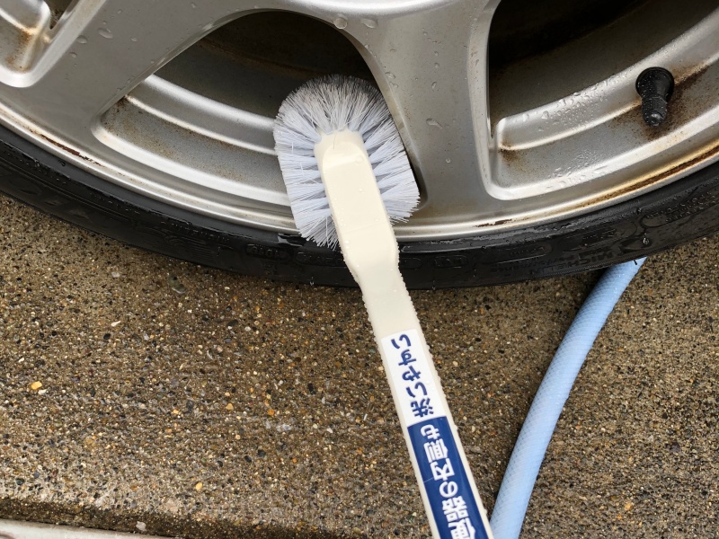 ホイール外す余裕のある方は、外して洗った方が圧倒的に楽ですし、ブレーキのキャリパーやローターにかかってしまう心配もなくて良いかと思います。