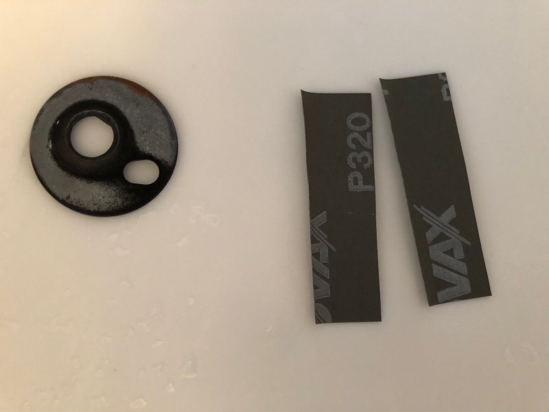 さて、外した土台は例によってまずサンドペーパーで磨いて錆を落とします。