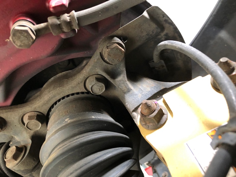 次にキャリパーの裏側のボルト19HEXを2箇所外せばキャリパーが外れます。