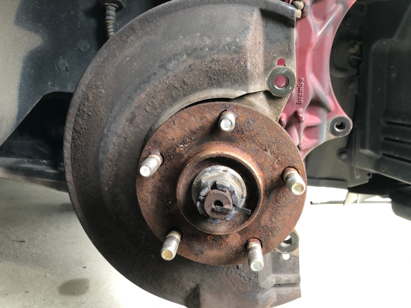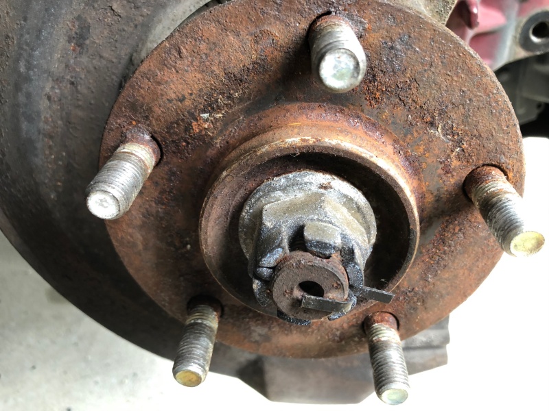 とりあえずサイドブレーキのレバーを下ろして、それでも外れませんでしたので、ローターについているサービスホールにボルトをグリグリとねじ込んだり、戻したりしながらローターを外すことに成功しました。