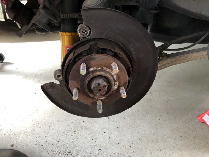 リアはサイドブレーキのインナーシューがあり、ローターが簡単に外れない事が多いと思います。私もそうでした。