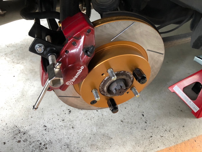 ちなみに、今回はスリットローターを逆回転で付けてますので、正回転でつけるよりもガッチリとブレーキが効くようになっているはずです。