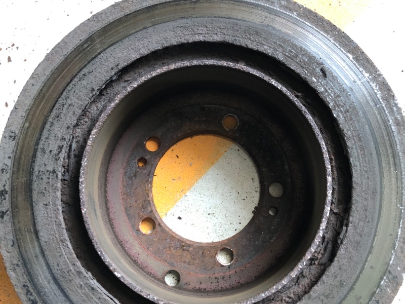 取り外したローターはやはりボロボロでした・・・長い間おつかれさまでした。恐らく16年間一度も交換されてないはずです。